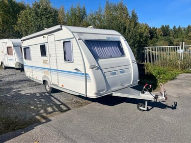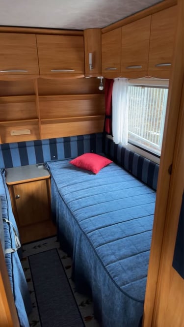 En praktisk och välutrustad husvagn som erbjuder allt du behöver för en bekväm semester. Perfekt för familjen eller vännerna, med gott om plats och smarta lösningar. Vagnen är utrustad med säkerhetsdrag som ger en stabil och smidig körning.